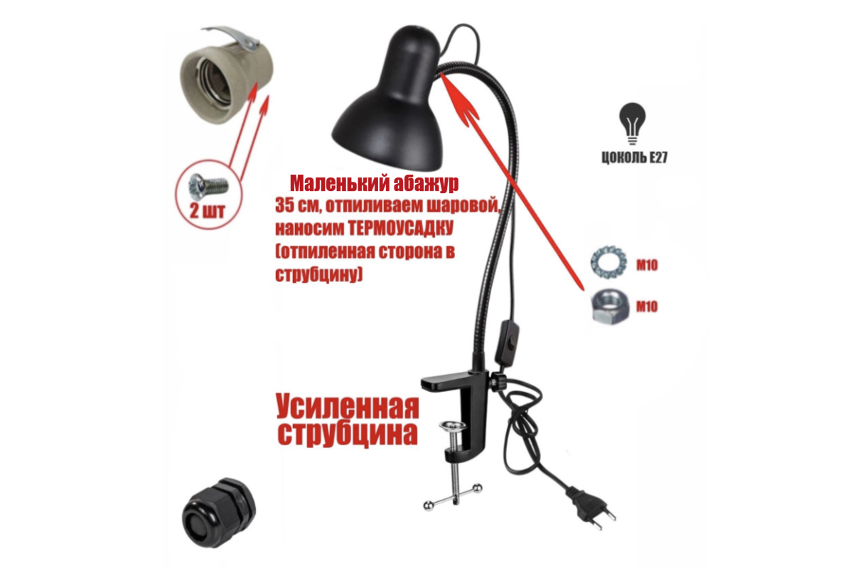 Гибкая настольная черная лампа на усиленной струбцине предназначена для подсветки рабочего места, стола школьника, освещения в процессе создания фото и видео контента. Гибкая ножка светильника регулирует угол наклона и поворота, позволяя комфортно установить лампу над объектом освещения. Усиленная струбцина надежно крепится к поверхности, фиксируя осветитель с абажуром на столе, тумбе, полке, спинке кровати шириной до 5 см. Подсветка для чтения на изголовье кровати с гибкой ножкой черная осветит объект направленным и комфортным светом.