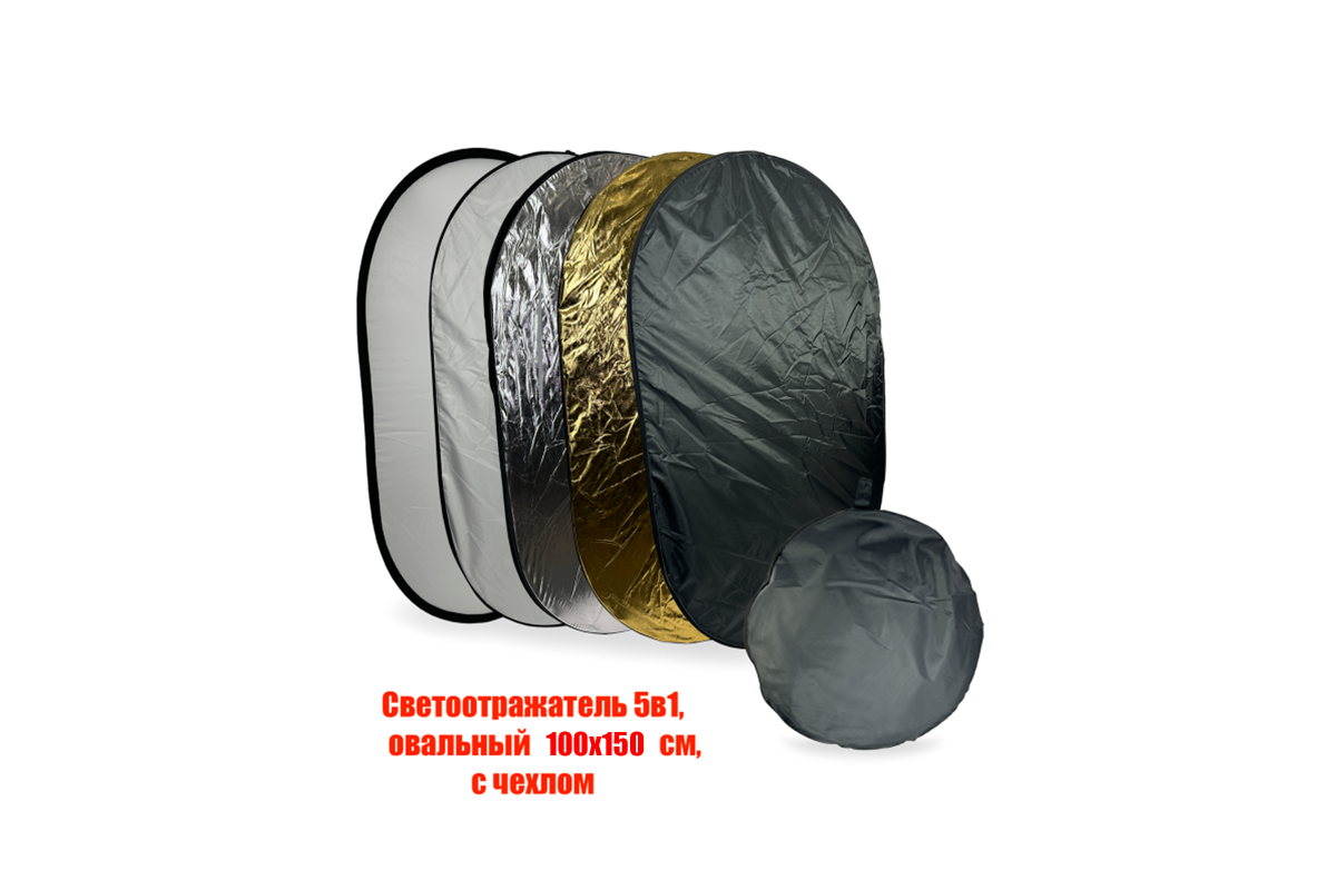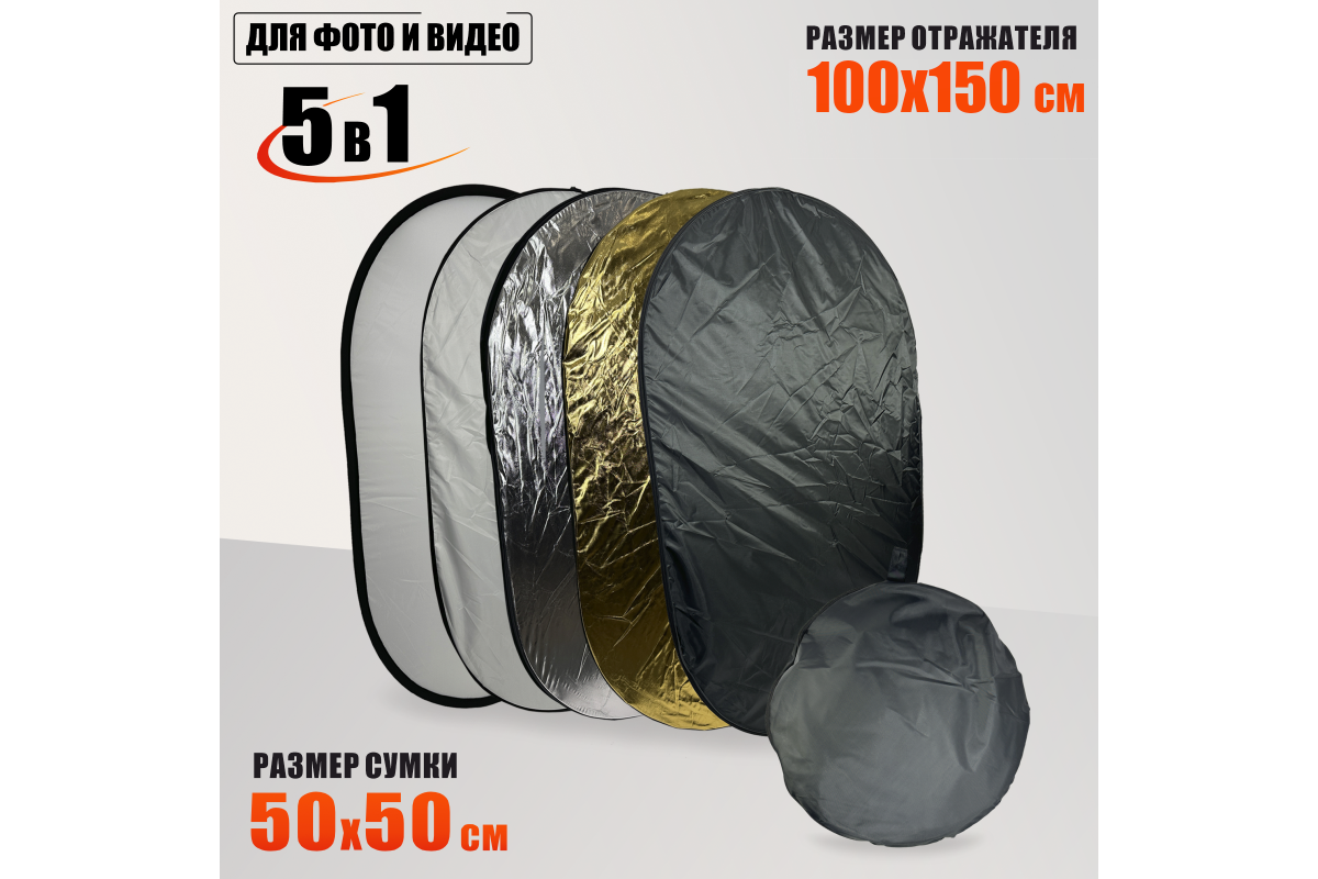 Отражатель для фото и видео, светоотражатель 5в1, овальный 100х150 см, с чехлом