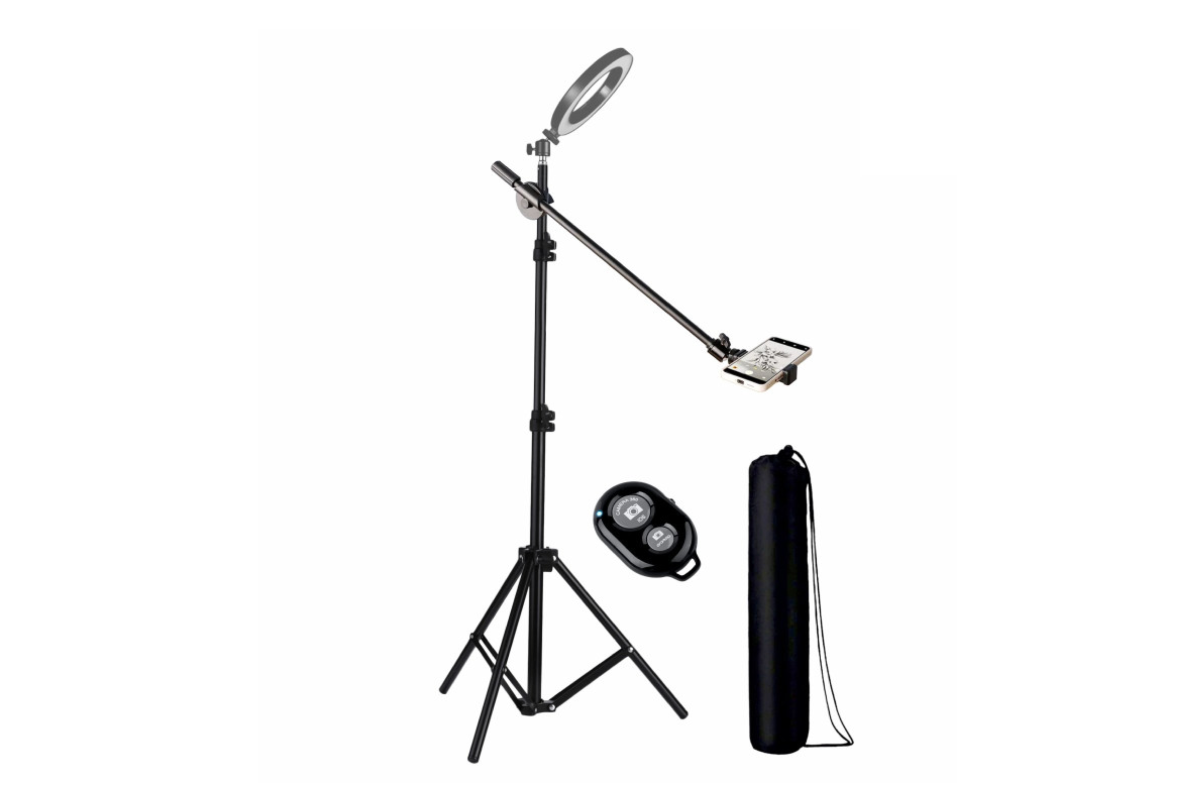 Напольная стойка для кольцевой лампы LS-G17-CВ на усиленном штативе (LS8806) для съемки сверху с держателем для телефона, сумкой-чехлом и кнопкой Bluetooth