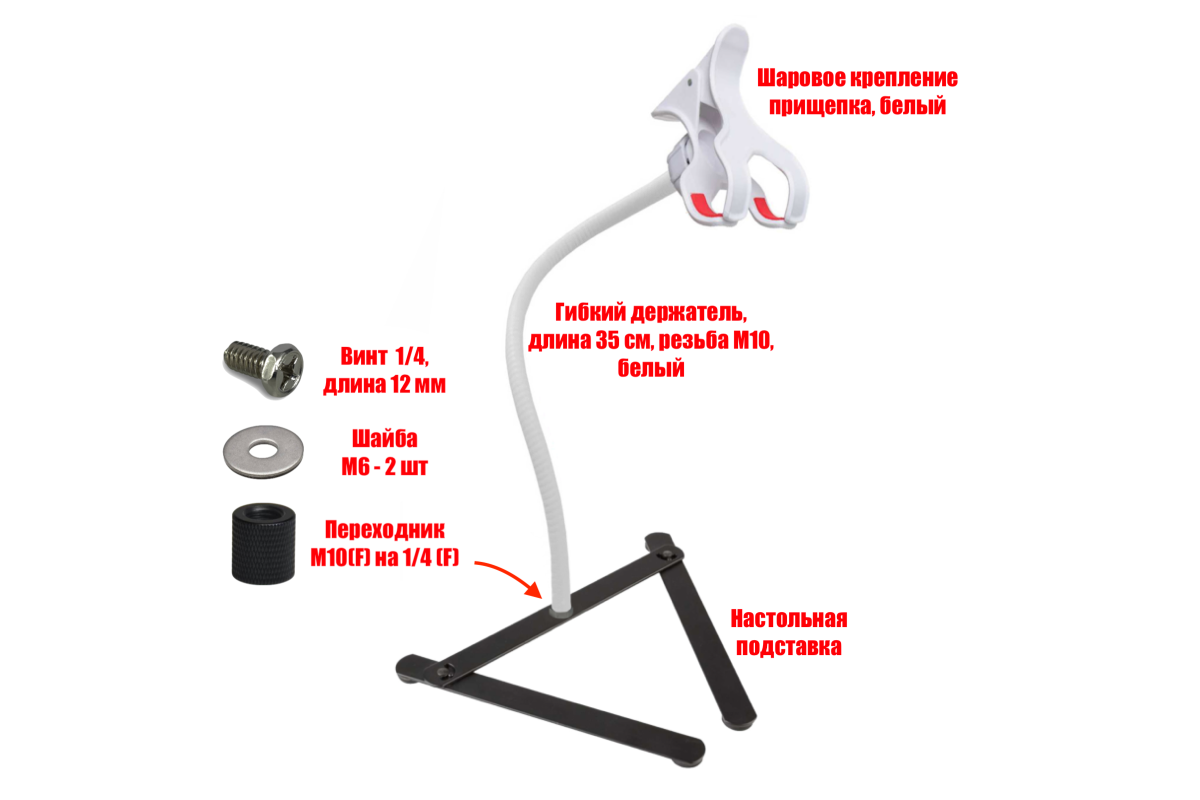 - Гибкий держатель, длина 35 см, резьба М10, белый - 1 шт;