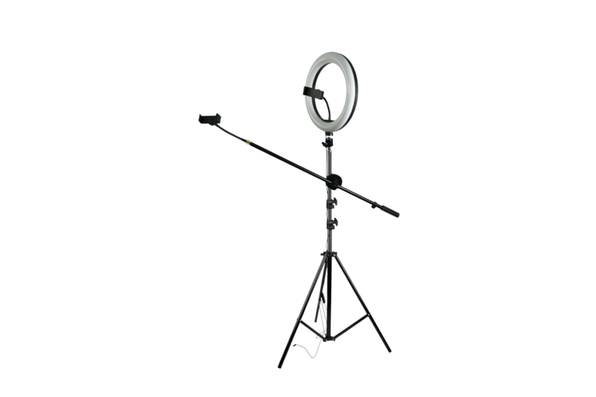 Кольцевая лампа JBH-4810 со штативом, журавлем, гибкими держателями телефона, шарниром, диаметр 26 см — это комплексное решение для горизонтальной съемки, идеально подходящее для блогеров, визажистов, фотографов и всех, кто ценит качественное освещение и удобство. Комплект включает в себя телескопический штатив высотой до 1,9 метра, на вершине которого закреплена кольцевая лампа диаметром 26 см. К лампе крепится держатель для телефона на гибкой ножке, обеспечивая максимальную свободу позиционирования смартфона. В комплект также входят шарнир для регулировки угла наклона лампы, журавль для дополнительной гибкости и соединительный элемент 15 мм для надежного крепления всех компонентов к штативу. Эта стойка предоставляет все необходимое для создания профессиональных фотографий и видео с горизонтальным ракурсом. В комплекте два держателя для телефона. Кольцевая лампа имеет режима температуры света, что добавляет вариативности при съемки. Телескопический штатив обеспечивает регулировку высоты, а кольцевая лампа создает равномерное и мягкое освещение. Гибкая ножка держателя телефона позволяет легко настроить идеальный ракурс. Шарнир дополнительно регулирует угол наклона лампы, а журавль может использоваться для крепления других аксессуаров. Данный штатив с кольцевой лампой осветителем — это универсальный инструмент, который поможет вам реализовать ваши творческие идеи и добиться профессиональных результатов.