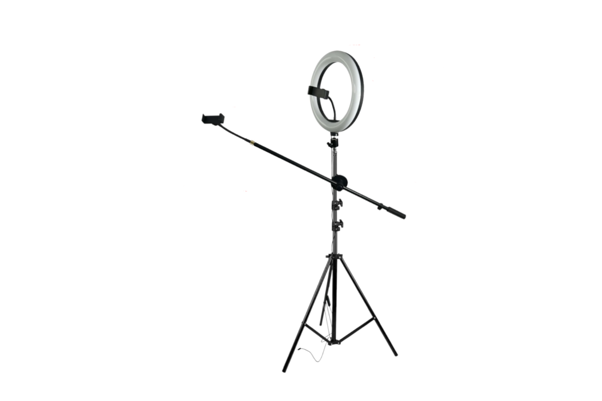 Напольная стойка-штатив JBH-G12 с кольцевой лампой 26 см — это комплексное решение для горизонтальной съемки, идеально подходящее для блогеров, визажистов, фотографов и всех, кто ценит качественное освещение и удобство. JBH-G12 включает в себя телескопический штатив высотой до 1,9 метра, на вершине которого закреплена кольцевая лампа диаметром 26 см. К лампе крепится держатель для телефона на гибкой ножке, обеспечивая максимальную свободу позиционирования смартфона. В комплект также входят шарнир для регулировки угла наклона лампы, журавль для дополнительной гибкости и соединительный элемент 15 мм для надежного крепления всех компонентов к штативу. Эта стойка предоставляет все необходимое для создания профессиональных фотографий и видео с горизонтальным ракурсом. В комплекте два держателя для телефона, которые можно установить, как на штатив, так и на журавль. Кольцевая лампа имеет режима температуры света, что добавляет вариативности при съемки. Телескопический штатив обеспечивает регулировку высоты, а кольцевая лампа создает равномерное и мягкое освещение. Гибкая ножка держателя телефона позволяет легко настроить идеальный ракурс. Шарнир дополнительно регулирует угол наклона лампы, а журавль может использоваться для крепления других аксессуаров. Данный штатив с кольцевой лампой осветителем — это универсальный инструмент, который поможет вам реализовать ваши творческие идеи и добиться профессиональных результатов.