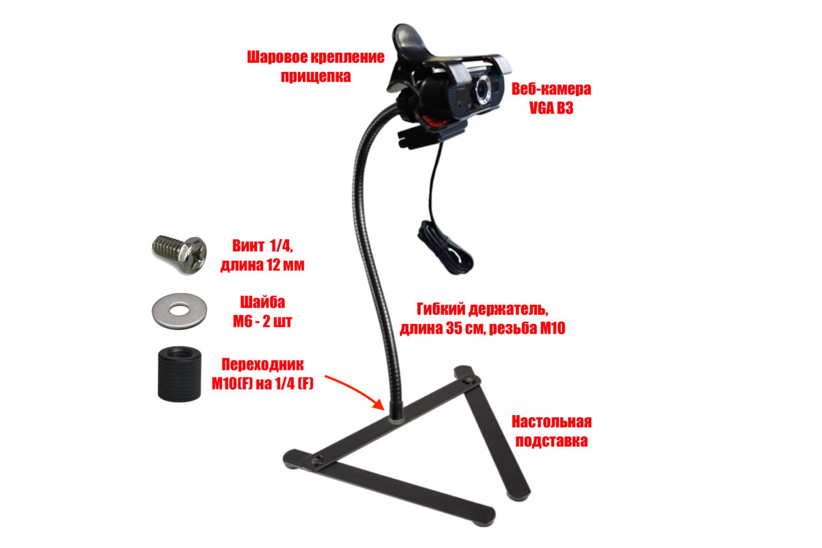 - Гибкий держатель, длина 35 см, резьба М10 - 1 шт;
