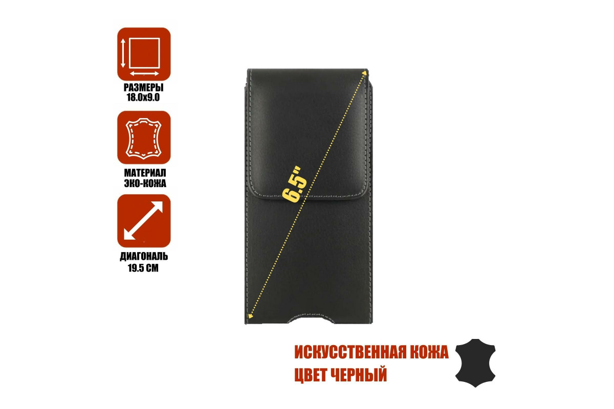 Чехол- кобура на ремень для смартфона 6.5", вертикальный, черный