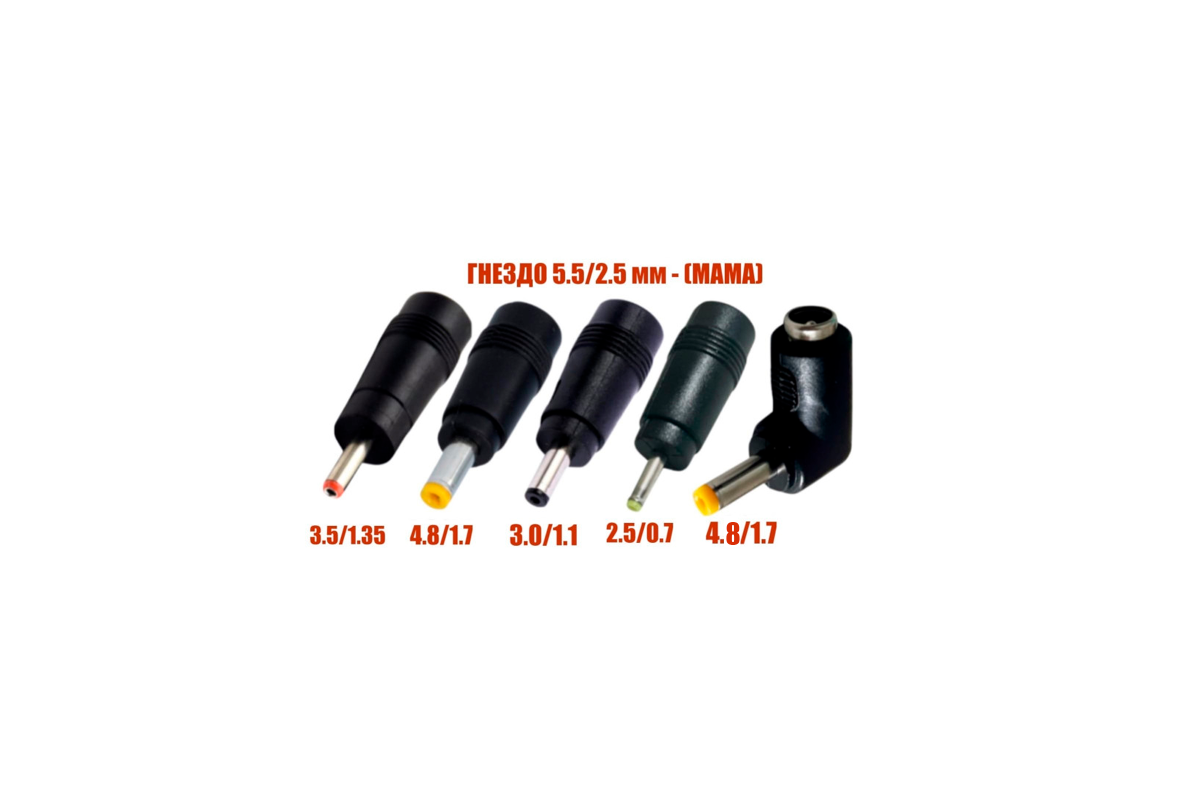 Комплект переходников DC: гнездо 5.5/2.5 мм (мама) - штекер 3.0/1.1мм, 3.5/1.35мм, 4.8/1.7мм, 2.5/0.7мм, 4.8/1.7 мм