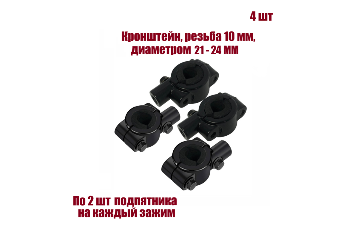 Кронштейн для зеркал мото вело мотоцикла, резьба 10 мм, на руль диаметром 21-24 мм, 4 шт