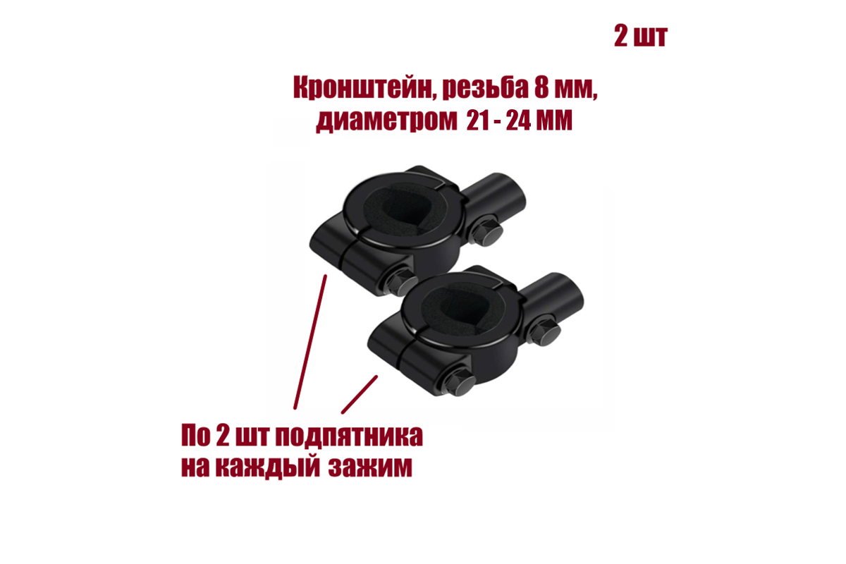 Кронштейн для зеркал мото вело мотоцикла, резьба 8 мм, на руль диаметром 21-24 мм, 2 шт