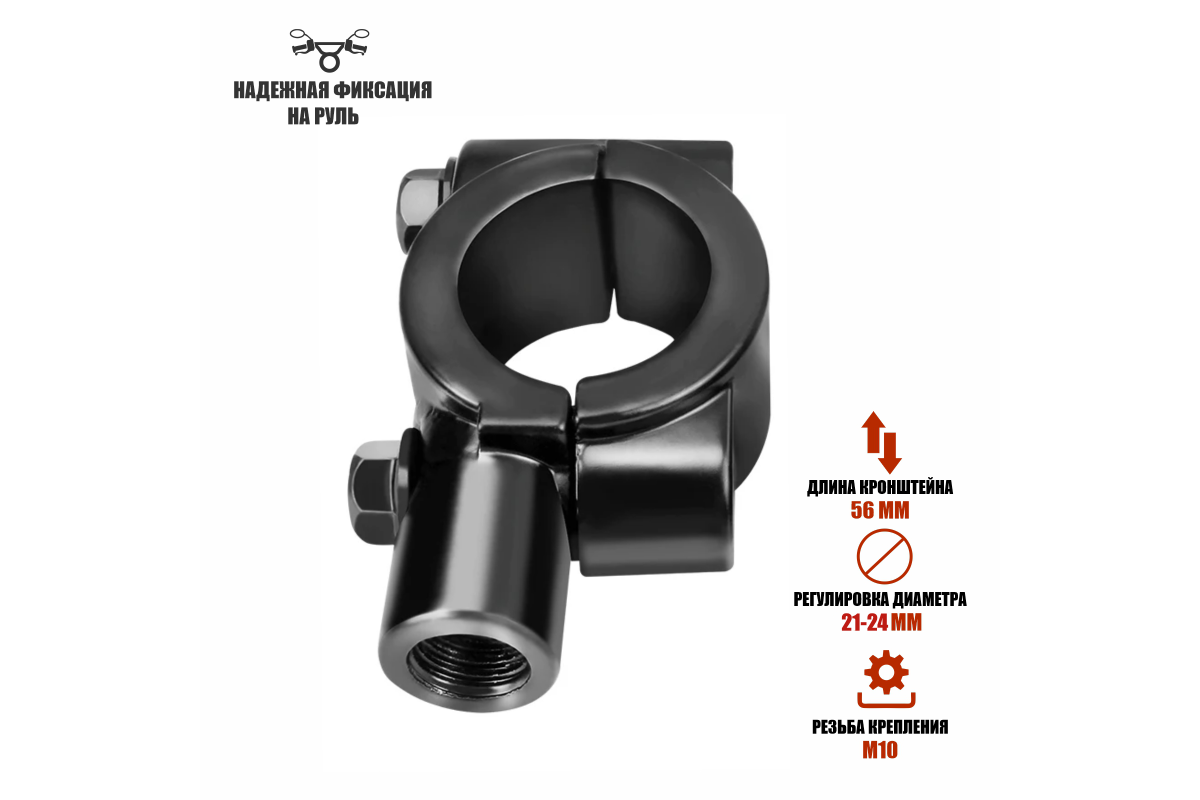 Кронштейн для зеркал мото вело мотоцикла, резьба 10 мм, на руль диаметром 21-24 мм - 1 шт