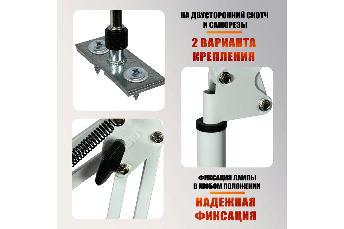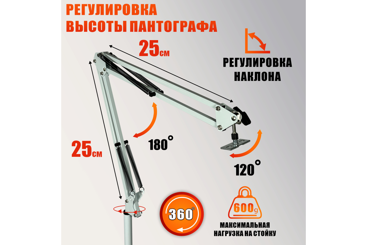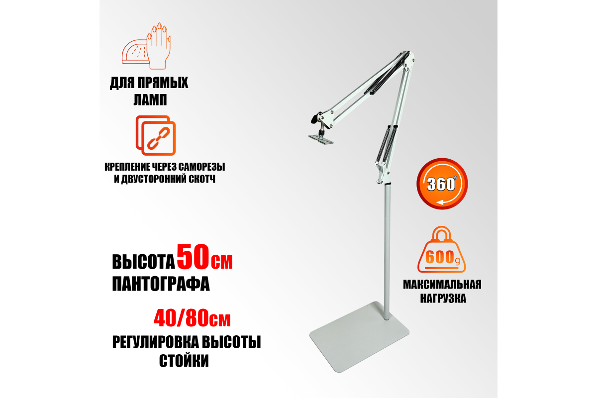 Держатель лампы для сушки ногтей - незаменимый профессиональный аксессуар для мастеров, работающих в индустрии красоты. Держатель для лампы для сушки ногтей идеально подойдет как для домашних помещений, студий, так и для салонов красоты. Штатив для гель лампы идеально использовать при маникюре, педикюре, покрытии, использовании гель-лаков и других процедурах. Стойка для педикюра позволит отлично организовать рабочее место, освободив пространство на столе: теперь необязательно держать лампу на рабочем столе, возможно фиксировать её на пантографе и пользоваться ей по необходимости. Держатель кронштейн подходит для ламп сушилок с прямой поверхностью и крепится через саморезы, включенные в комплект; более того он может фиксировать УФ-лампу и на двусторонний скотч, нанесенный на держатель. Стойка штатив для лампы для педикюра и маникюра подходит под большинство видов аппаратов: UV ламп, UV LED ламп, мини и стандартных размеров. Пантограф позволяет настраивать положение сушилки. Напольная стойка фиксирует комплект на полу или другой ровной поверхности. Более того, стойка оснащена двумя планками, за счет чего становится менять высоту конструкции. Таким образом, данный держатель для сушки ногтей будет полезен тем, кто работает в индустрии красоты и хочет увеличить комфорт во время работы и организовать пространство.