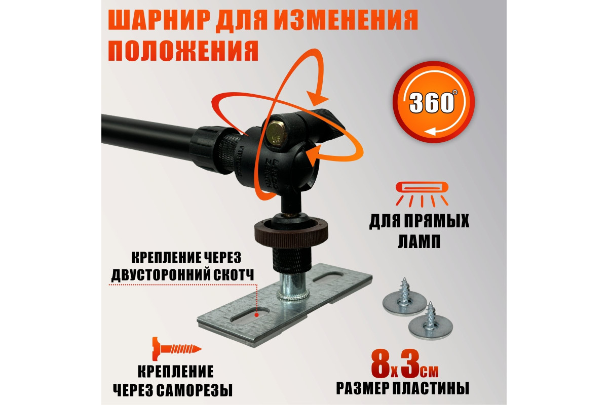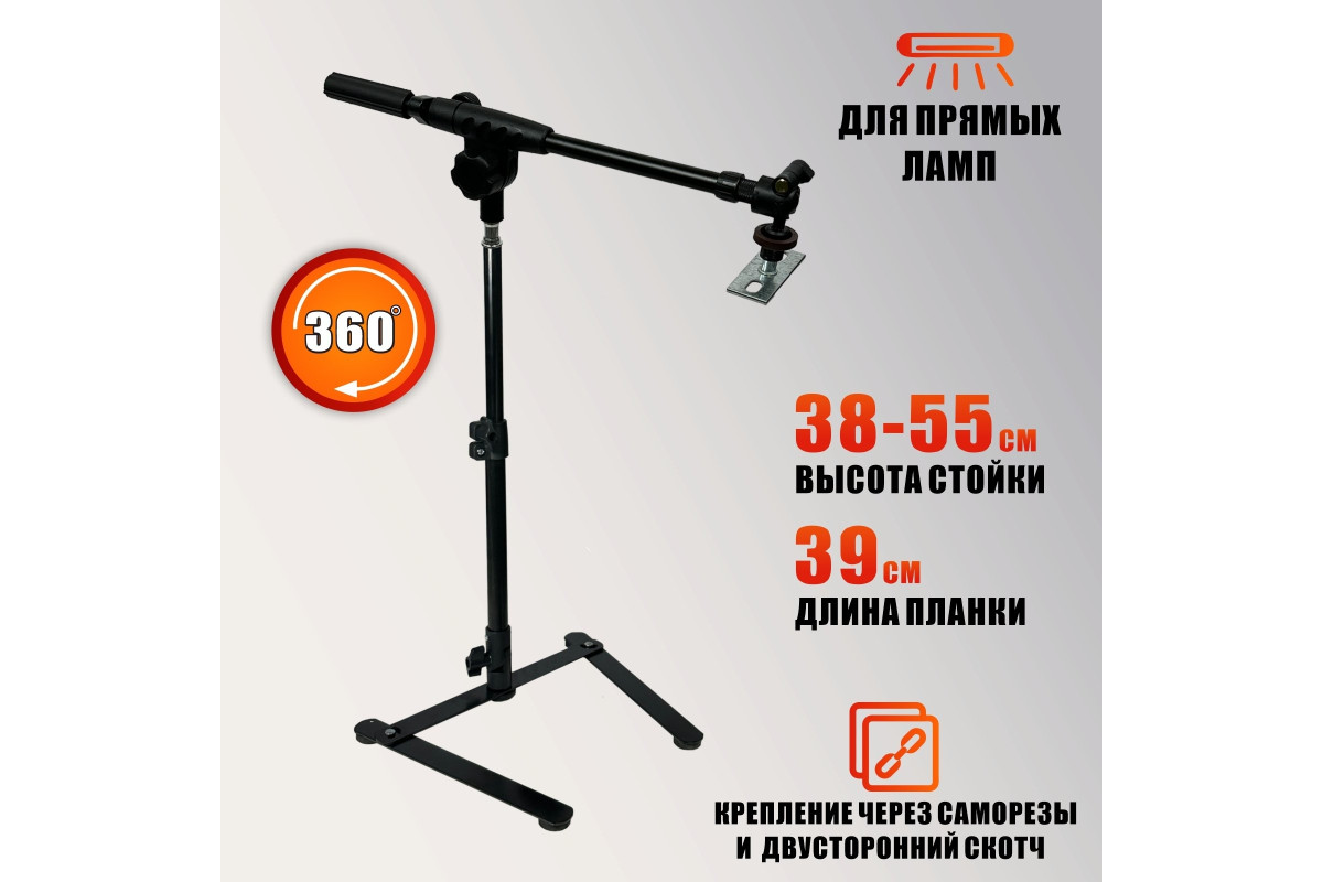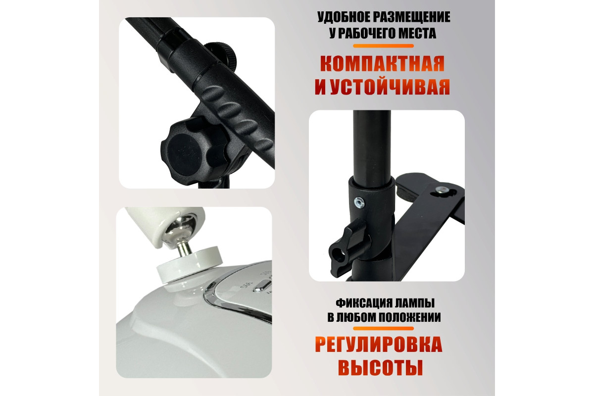 Держатель лампы для сушки ногтей на напольном основании - аксессуар, позволяющий зафиксировать лампу для сушки ногтей для маникюра и педикюра. Может использоваться в салонах красоты, студиях, домашних студиях для работы с гель-лаком. Стойка может фиксироваться как на полу, так и на столе с помощью стабильного основания - это позволяет использовать УФ лампу для сушки ногтей на руках и на ногах. Телескопическая стойка дает возможность регулировать комплект по высоте, позволяя подобрать самую удобную. Соединительный элемент крепит журавль, которые помогает настраивать угол наклона лампы. Сама УФ лампа для сушки ногтей крепится через специальную пластину тремя способами: либо через уже клеевую прослойку, либо через саморезы с шайбами, либо использовав оба крепления. Таким образом, данный комплект для сушки ногтей будет полезен тем, кто занимается маникюром и педикюром и хочет установить лампу на стабильную стойку.