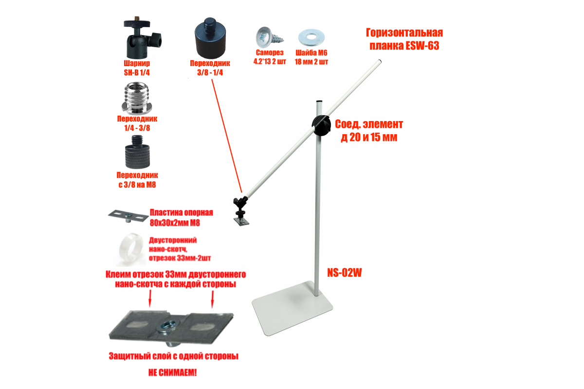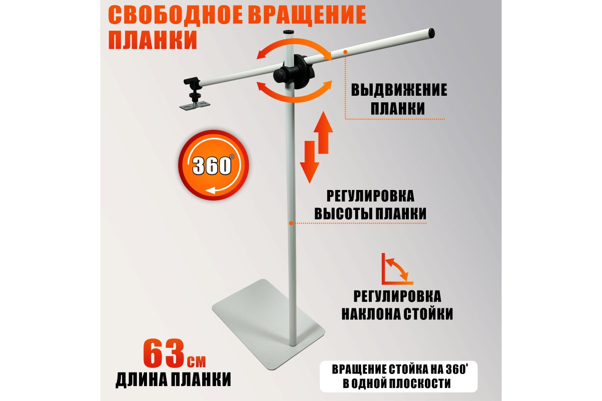 Держатель лампы для сушки ногтей на напольном основании - аксессуар, позволяющий зафиксировать лампу для для маникюра и педикюра. Может использоваться в салонах красоты, студиях, домашних студиях для работы с гель-лаком. Стойка фиксируется на полу с помощью стабильного основания и имеет возможность регулировать высоту - это позволяет использовать УФ лампу для сушки ногтей на руках и на ногах. Соединительный элемент крепит журавль, которые помогает настраивать угол наклона лампы. Сама УФ лампа для сушки ногтей крепится через специальную пластину тремя способами: либо через клеевую прослойку, либо через саморезы с шайбами, либо использовав оба крепления. Таким образом, данный комплект для сушки ногтей будет полезен тем, кто занимается маникюром и педикюром и хочет установить лампу на стабильную стойку.