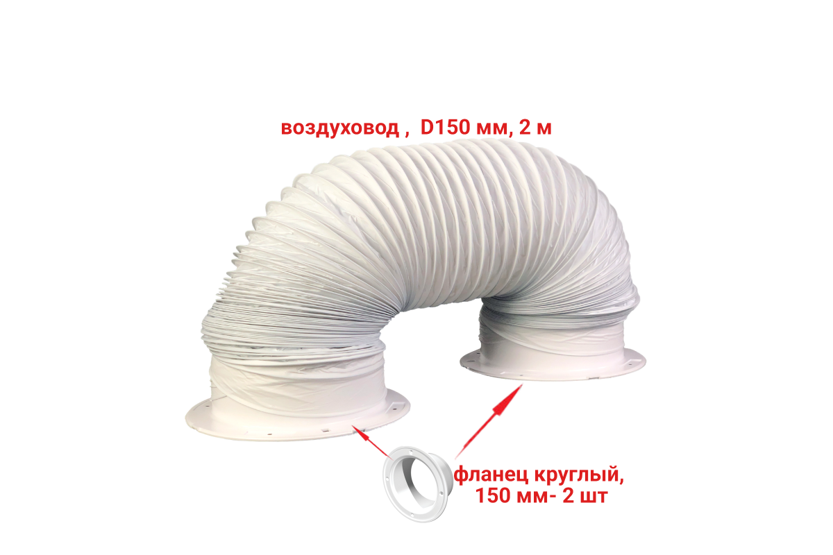 [СГП] Воздуховод гибкий гофра D150 мм 2 м с фланцами для вытяжки
