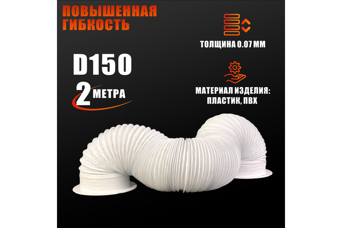 Воздуховод гибкий гофра D150 мм 2 м с фланцами для вытяжки- идеальный выбор для эффективной циркуляции! Наш