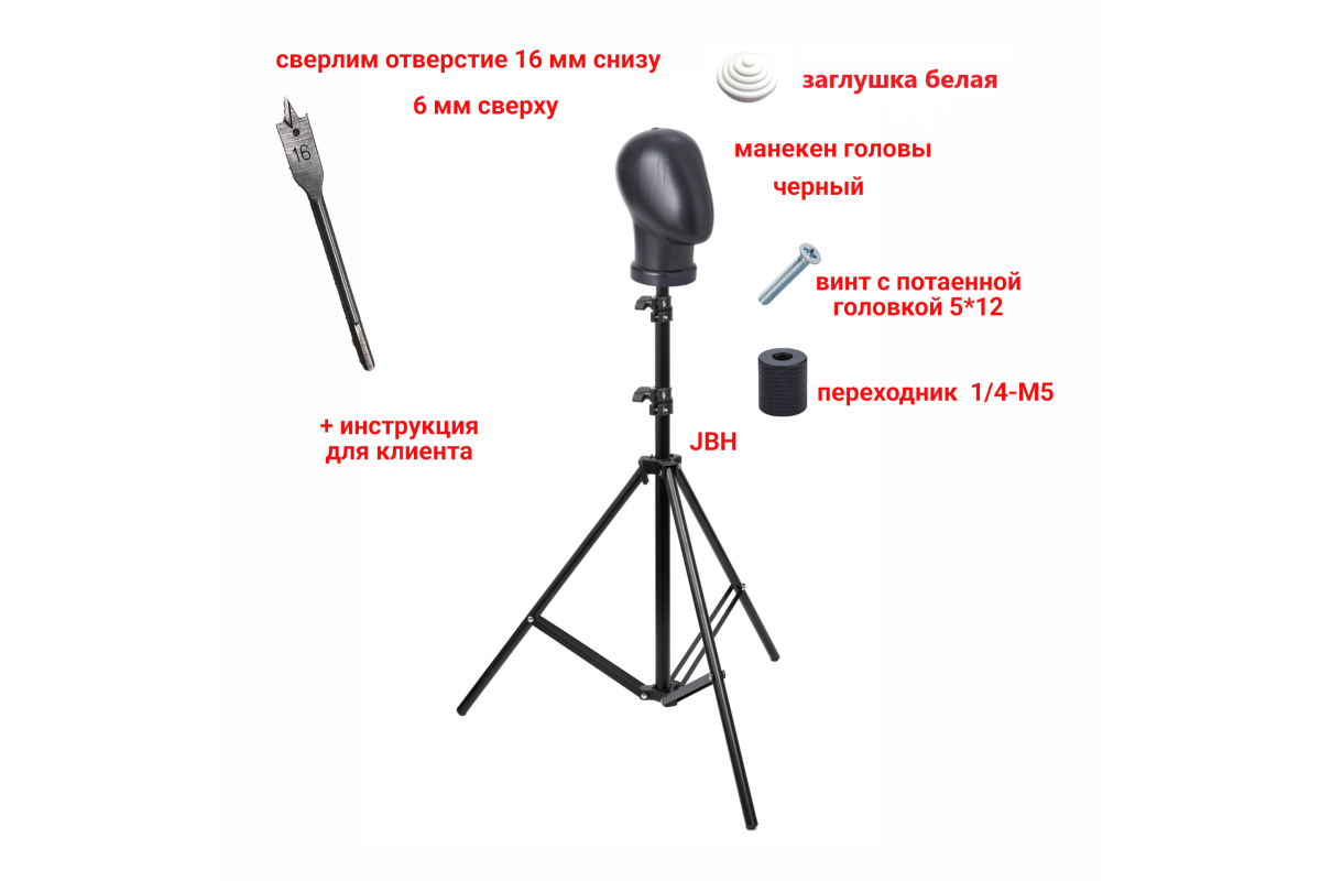 Манекен голова на напольной стойке JBH- отличный способ хранения и выкладки в магазине париков, шапок, шляп. Манекен головы на стойке идеален для презентации и хранения париков и головных уборов в торговом зале. Удобная регулируемая высота позволяет подобрать наиболее оптимальное и комфортное положение . Манекен голова на напольной стойке оснащен складным механизмом, за счёт чего удобен в транспортировке.
