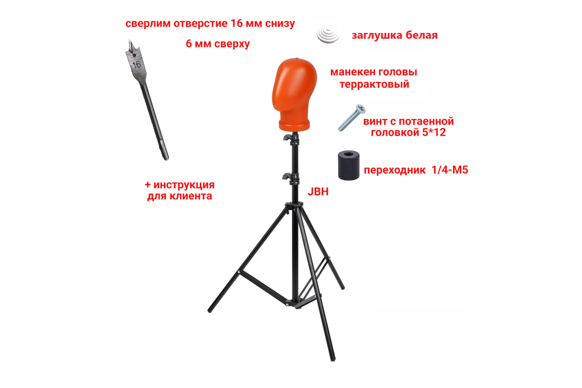Манекен голова на напольной стойке JBH, цвет терракотовый