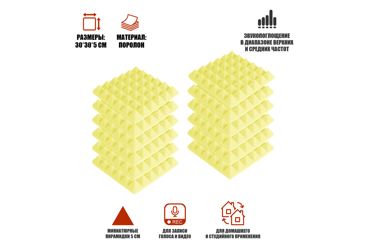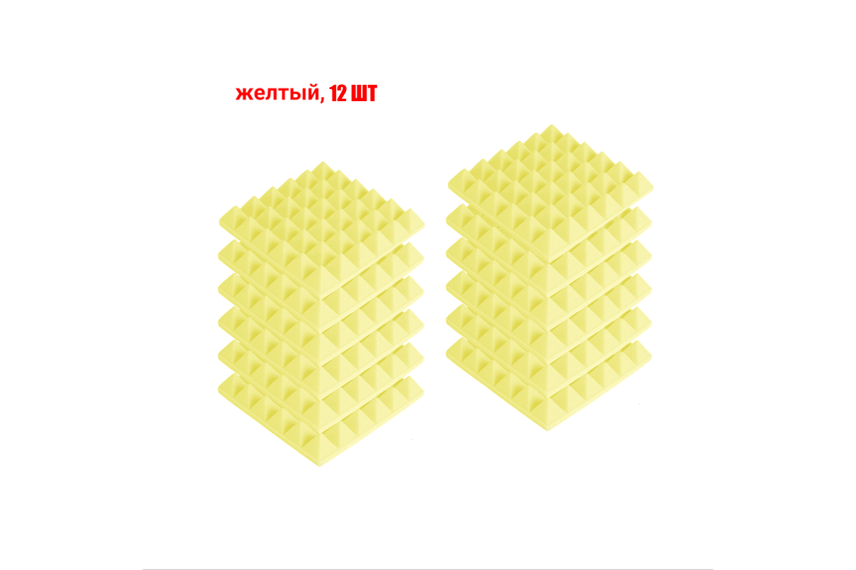 Звукоизоляция для студии, акустический поролон 30х30 см, желтый - 12 шт