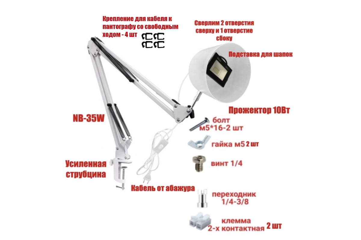 - Цвет пантографа, струбцины и защитного плафона - белый