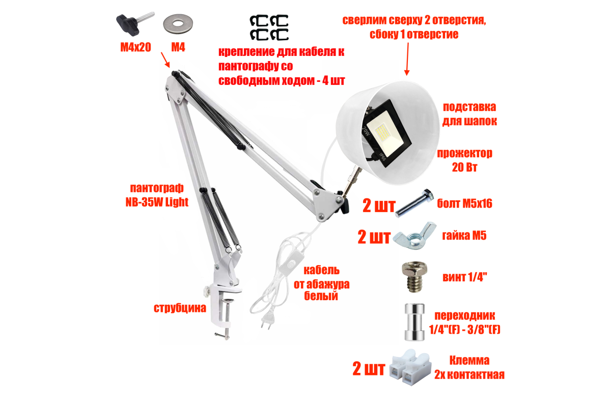 Внимание: при правильном расположении пантографа в струбцине возможен небольшой люфт!